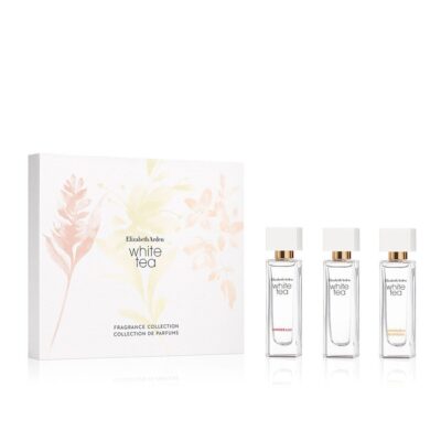 ESTUCHE ELIZABETH ARDEN WHITE TEA WHITE TEA GINGER +WHITE TEA EDT + WHITE TEA MANDARIN BLOSSON 10ML 3 PZ es el set unisex ideal para regalar o para darse un capricho con lo mejor de ELIZABETH ARDEN. Este elegante estuche reúne en un solo paquete los productos más destacados de la marca, presentados en un packaging de lujo listo para obsequiar.
