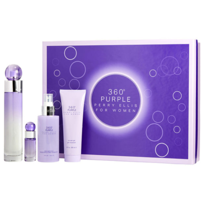 Estuche Perry Ellis 360 Purple 4PZ Perfume 100ml + Body Mist + Shower Gel + Mini 7.5ml es el set unisex ideal para regalar o para darse un capricho con lo mejor de PERRY ELLIS. Este elegante estuche de 4 piezas reúne en un solo paquete los productos más destacados de la marca, presentados en un packaging de lujo listo para obsequiar.